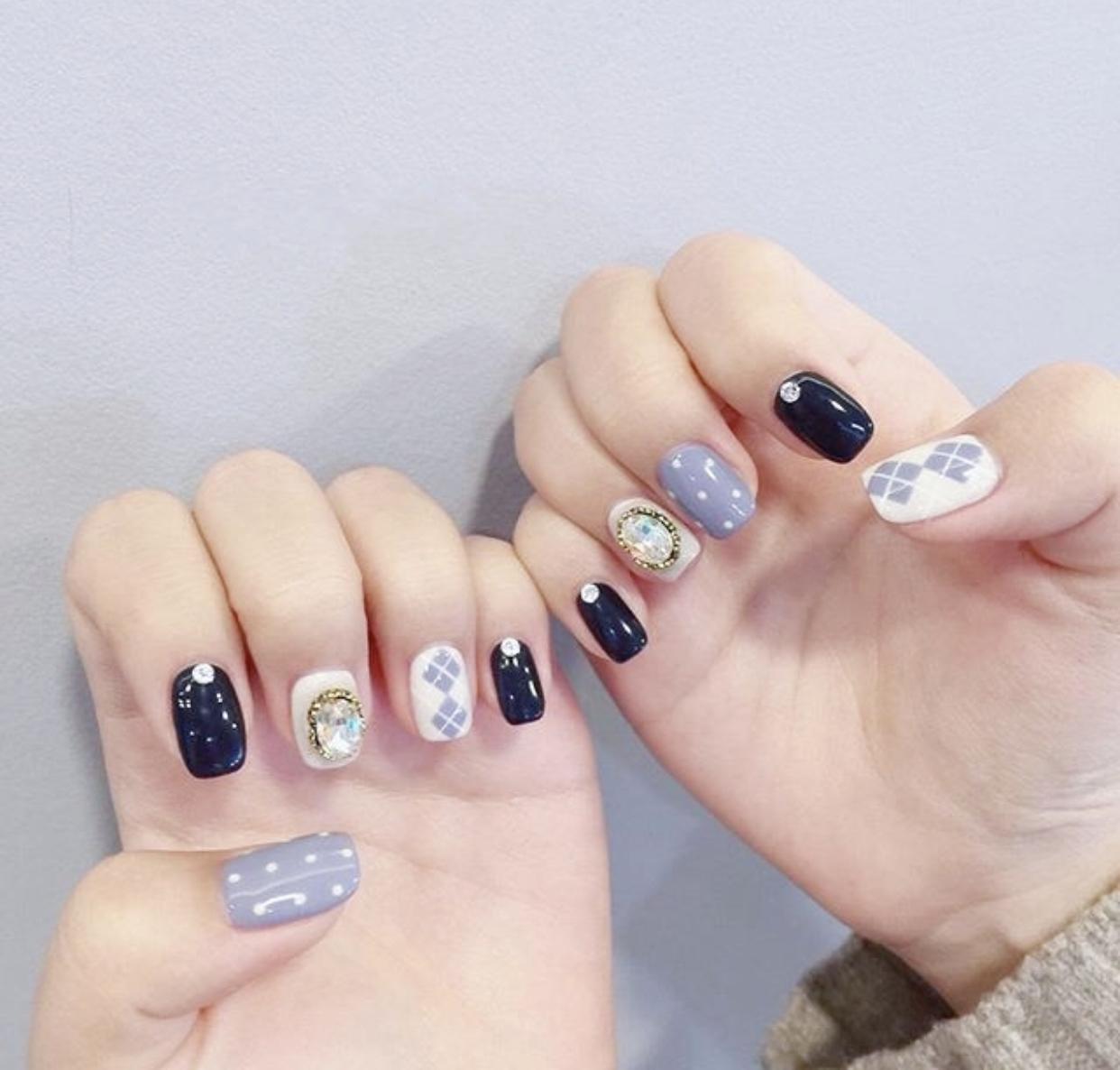 一些简约的毛衣纹美甲,也是冬天非常受欢迎的款式,搭配上淑女风的波点美甲和纯色美甲,整个指尖有着简约有丰富的效果,会非常耐看哦~