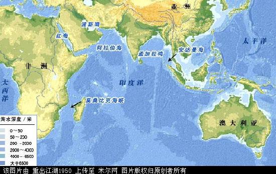 1497年,葡萄牙航海家达。伽马绕道非洲好望角,向东寻找印度大陆,将所经过的洋面称为印度洋。1570年的世界地图集正式将其命名为印度洋。印度洋是世界第三大洋。位于亚洲、大洋洲、非洲和南极洲之间。面积约为7617万平方千米,平均深度3397米,最大深度的爪哇海沟达7450米。洋底中部有大致呈南北向的海岭。大部处于热带,水面平均温度20℃一27℃。其边缘海红海是世界上含盐量最高的海域。海洋资源以石油最丰富,波斯湾是世界海底石油最大的产区。印度洋是世界最早的航海中心,其航道是世界上最早被发现和开发的,是连接非洲、亚洲和大洋洲的重要通道。海洋货运量约占世界的10%以上,其中石油运输居于首位。