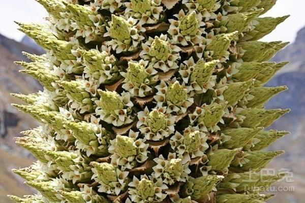 普雅花生长在南美安第斯高原海拔4000米的地方,一百年的时间只会开一次花,花期只有两个月,花穗有10米,缀一万多只花骨朵,缤纷绚丽。然而,花期一过,花体也便慢慢枯萎,最后死亡。