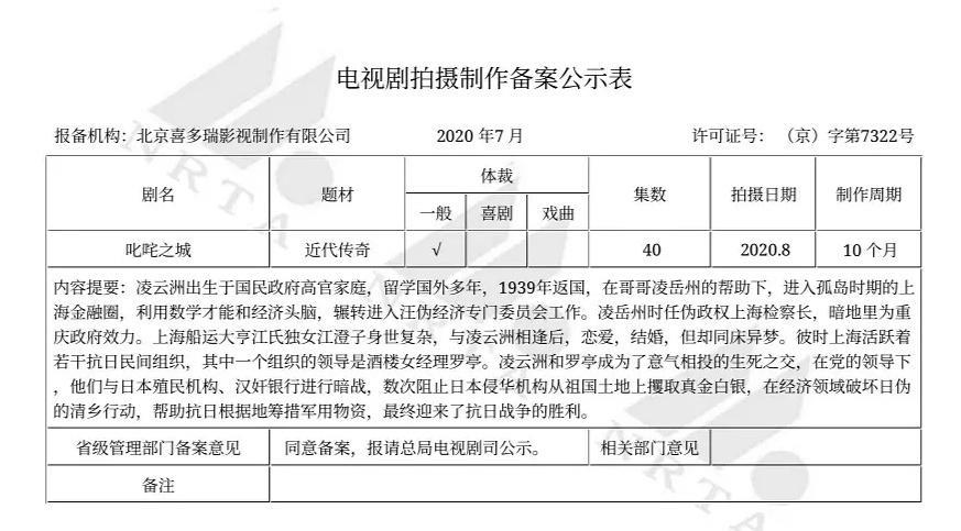 著名编剧汪海林在《四味毒叔》上提了一嘴,由柳云龙、张嘉益、于和伟等主演的谍战剧《叱咤之城》,预计21年三月开拍。