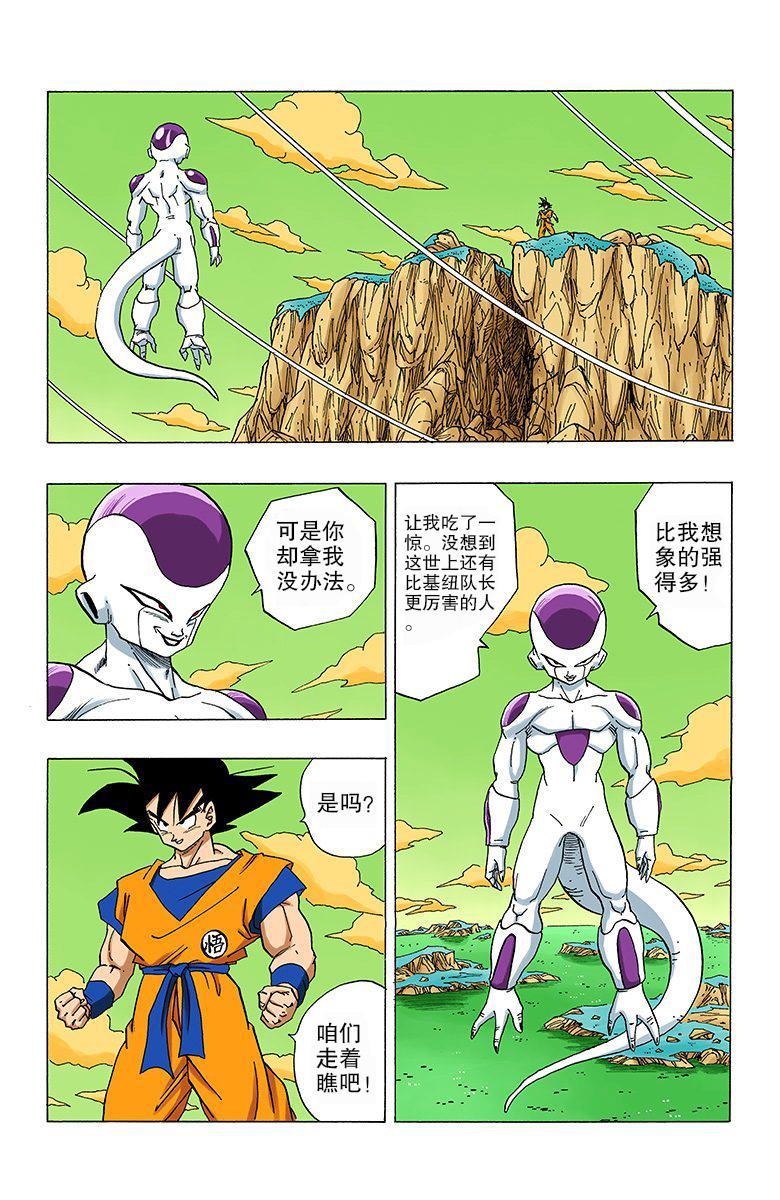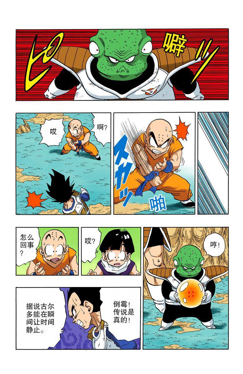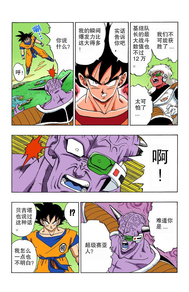 就剩最后一个基纽队长了,贝吉塔见到基纽和吉斯到来后,为了夺取龙珠先行撤退,但他也认为实力大增的孙悟空和基纽队长不过在伯仲之间(贝吉塔一度认为孙悟空已经成为超级赛亚人),希望两人两败俱伤,自己好坐收渔翁之利。可见此时的贝吉塔仍不是基纽队长的对手,可是后来睡了一觉,居然能和五十三万战斗力的弗利萨互角,少年JUMP给出了这个时候贝吉塔是25万,这就太不合理,东映似乎也觉得不对劲,于是原创了一段贝吉塔打完吉斯后被基纽换身,因连续几天苦战累到昏迷的剧情,可以看作多了一次重伤恢复······