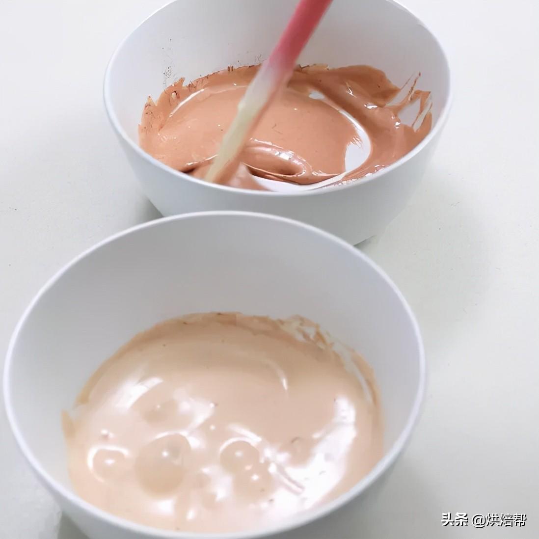 依次搅拌均匀,就得到了一深一浅两份可可蛋糕糊。