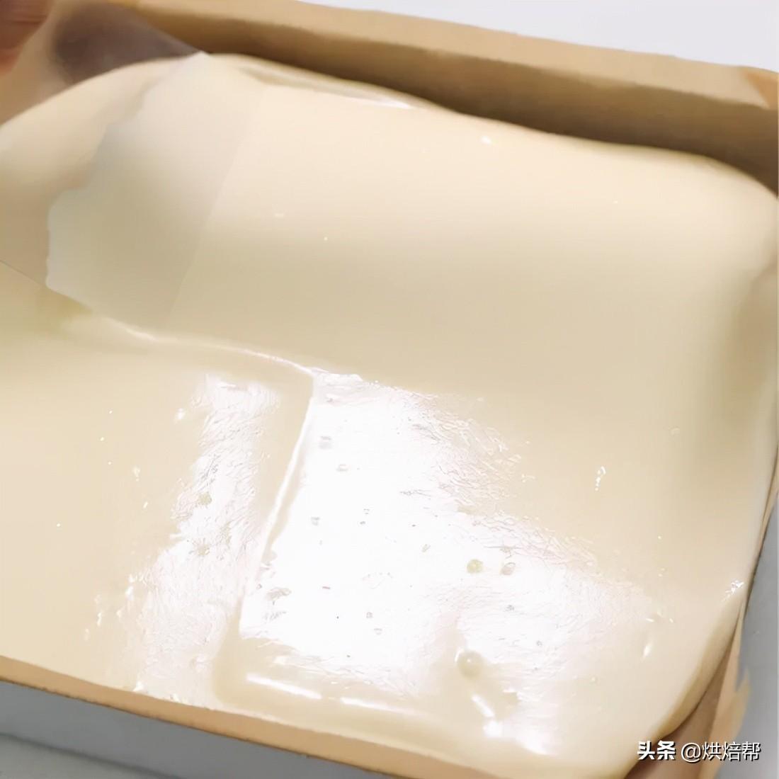这里我们不是要把它烤熟,只是让表皮变干,这样倒入原味蛋糕糊时,就不会融为一体。