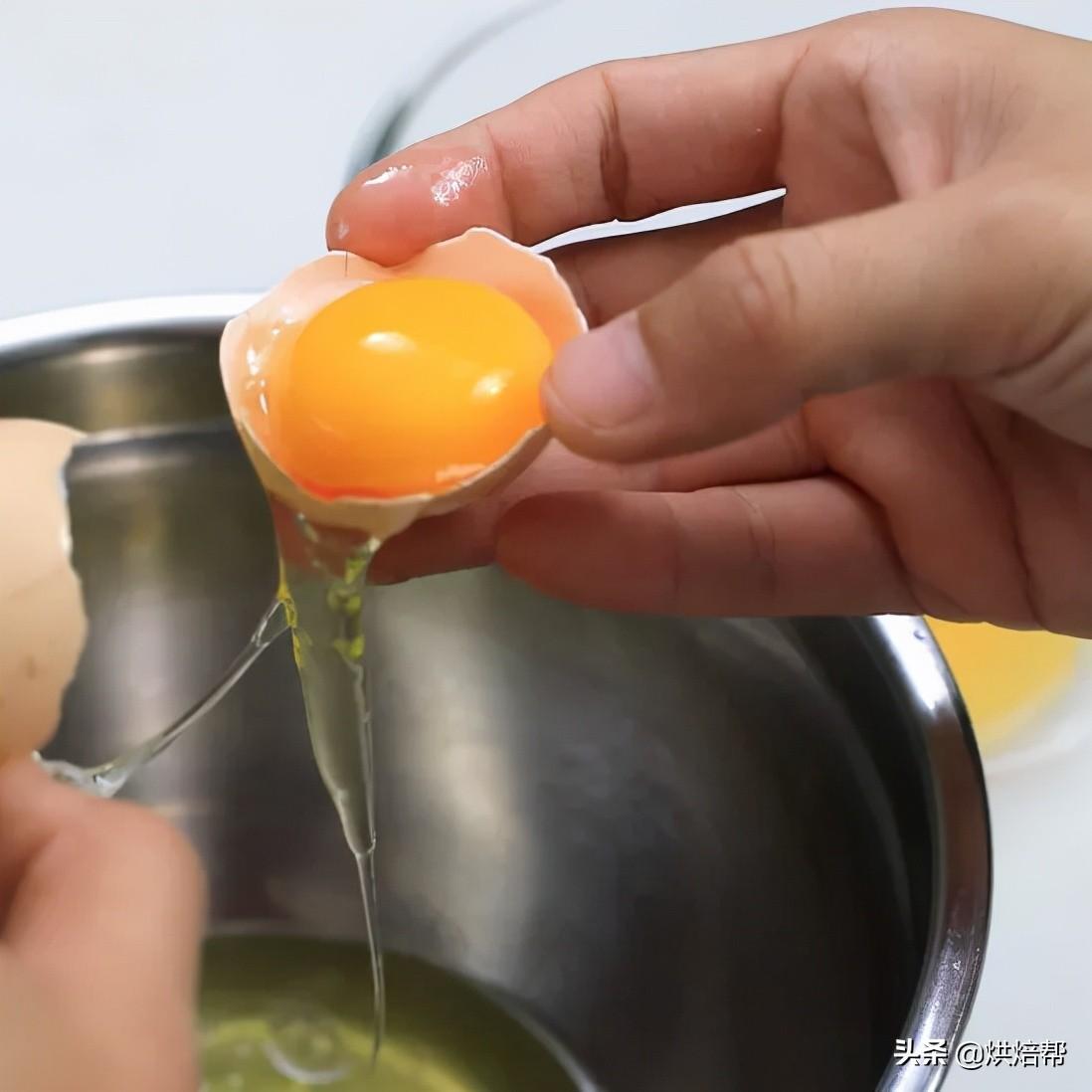 我们先制作蛋糕体,4个鸡蛋蛋白蛋黄分离,注意打蛋盆要无水无油,蛋白也不能混入蛋黄,否则就难以打发。