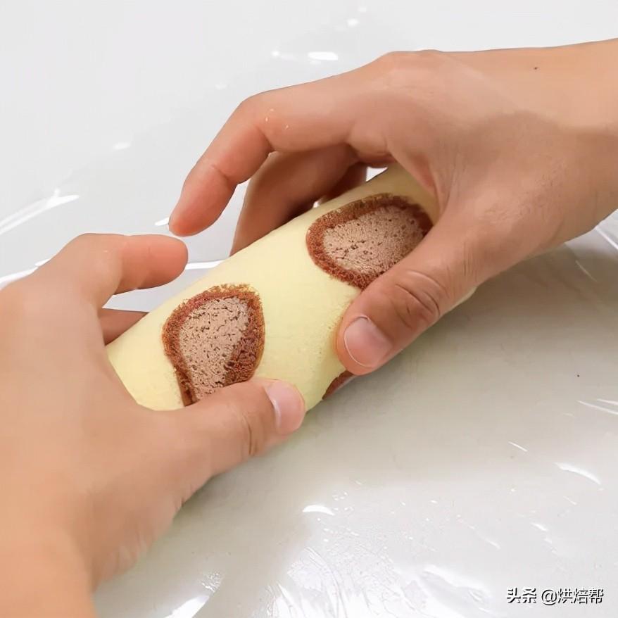 再用保鲜膜包好,两端分别扎紧定型,送入冰箱冷冻2小时。