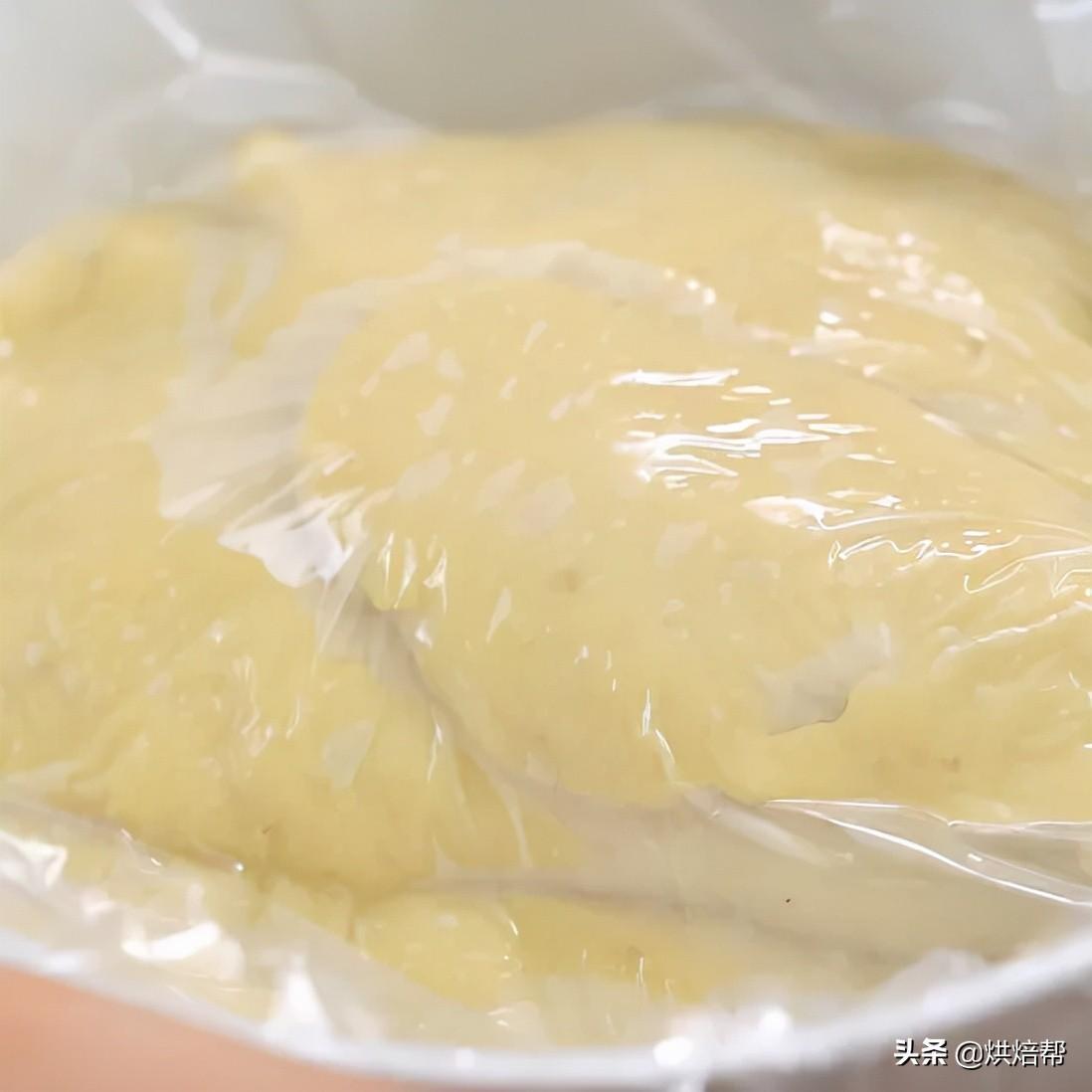 用保鲜膜贴面密封,表面就不会变干,送入冰箱冷藏3小时,香蕉卡仕达酱就做好了。