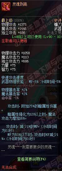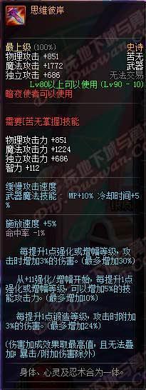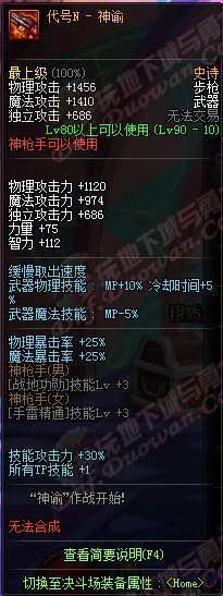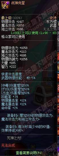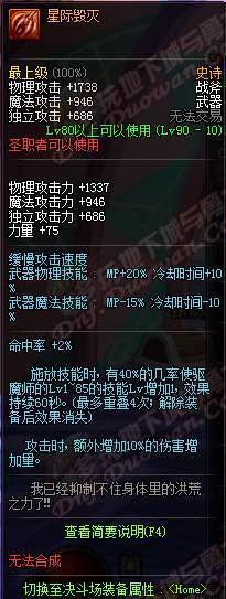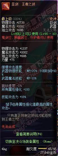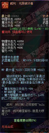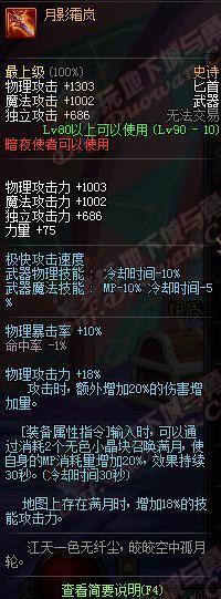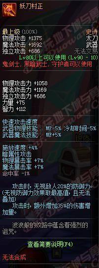 我咧吗耶!90ss短剑,武器介绍心中的黑暗,你是眼睛被遮住了吗?你以为你是林宥嘉“是上帝在我眼前遮住了帘?!属性完爆荒古,变态的增加42技能攻击力,还有几乎可以忽略的双暴击加成,这个武器评价就是:“真正牛逼的武器,不需要过多的加成,一条足矣!”