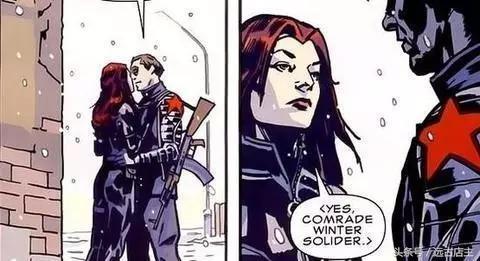 在漫画中,苏联人的逻辑便是如此。黑寡妇的一部分训练由冬日战士指导完成,而他也正是美国队长当年的伙伴巴基。他是一个被洗脑的俄罗斯特工。特训进行得非常顺利,而黑寡妇和冬日战士在特训中也日久生情,成为了恋人。