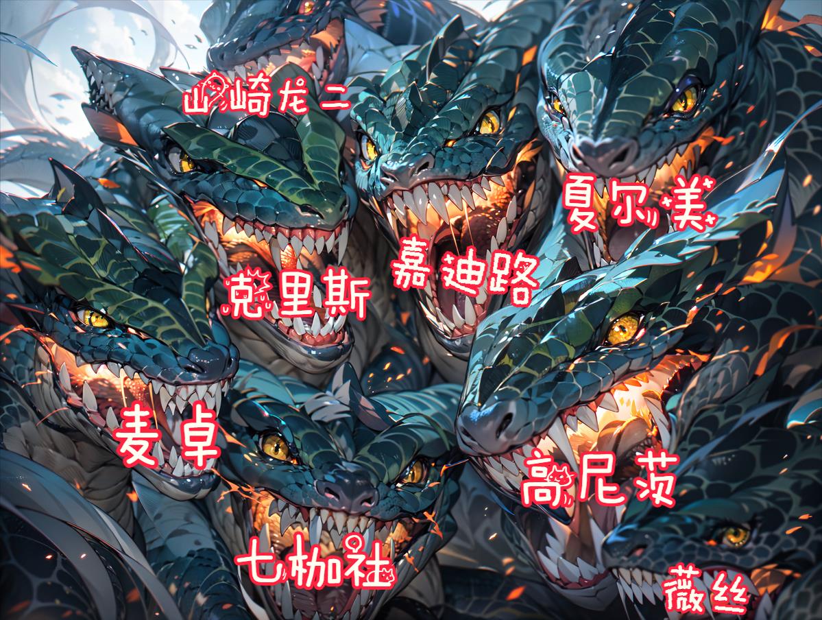 在《拳皇》系列中,虽然八神庵是最早使用八稚女的人物。但其实是大蛇一族最先使用的。八岐大蛇有八颗头颅,正是大家熟悉的“八杰集”。