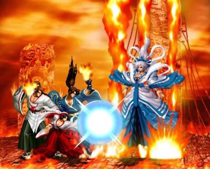 在《拳皇》故事中大蛇是草薙京、八神庵和神乐千鹤的先祖斩杀的。