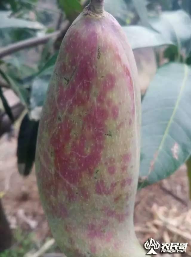 果农说,他还未套袋的红象牙,打药两三天后,出现图片中的症状,这大面积的红斑不知道还能不能消除,否则这批芒果就卖不了钱了。