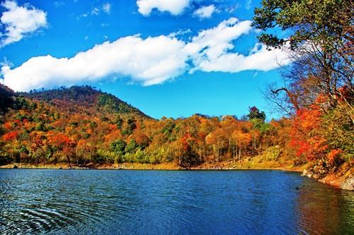 (3)月亮湖。月亮湖因湖面呈月牙状,故名“月亮湖”,传说月亮湖是孟获与祝融夫人情定之处。月亮湖属高原湖泊,海拔约2400m,水域面积约20000m2,夏季水温约17℃,4-5月沿湖周边报春花竞相开放,花海无边。