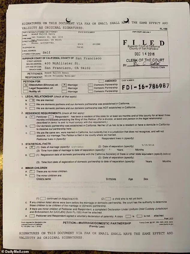 夫妻俩之间到底发生了什么,目前仍不得而知。但根据警方调取法院记录后发现,2016 年亨利曾向妻子提出离婚的请求,但遗憾的是未能成功。