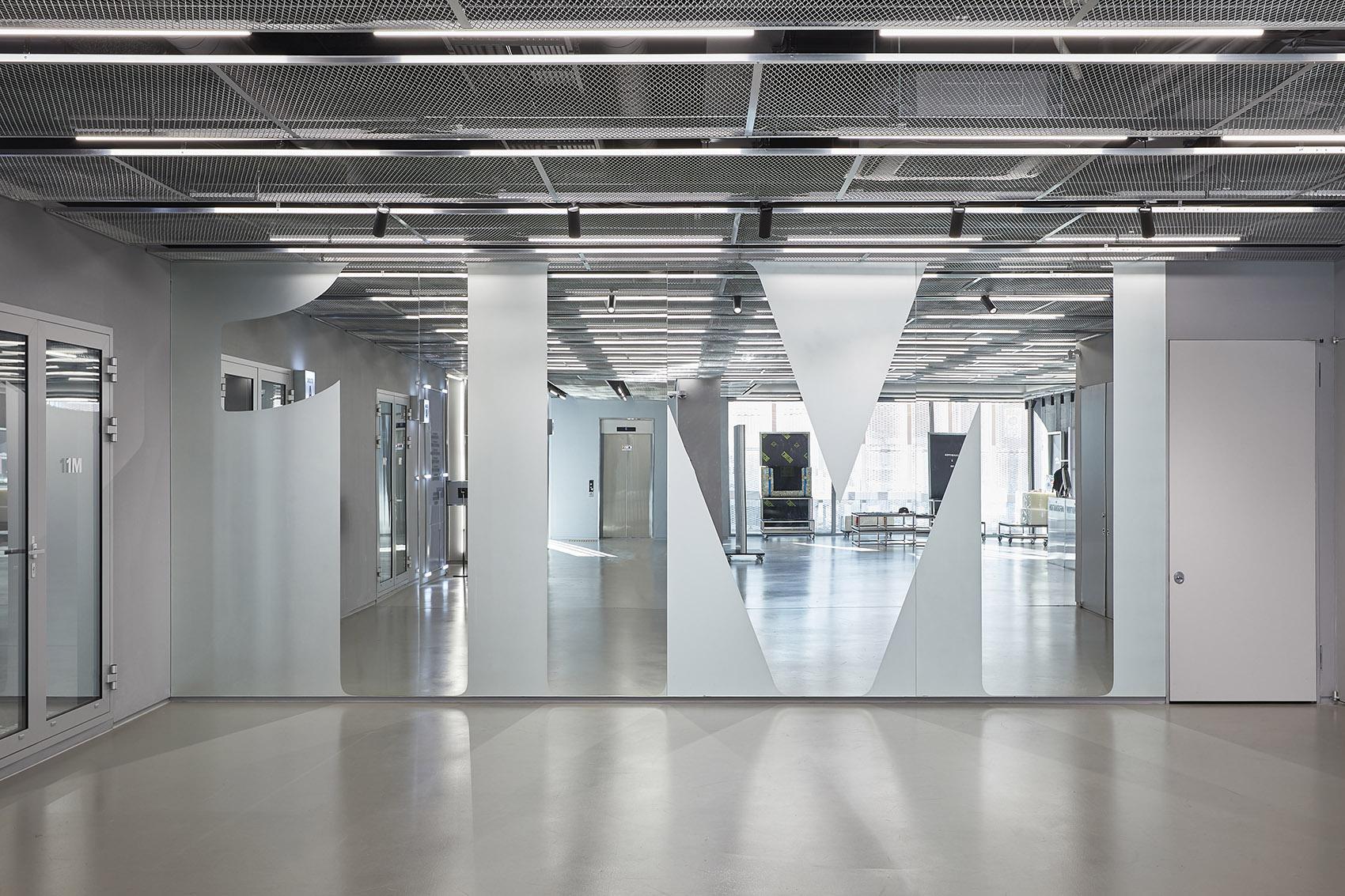 通过灯光和材料、几何体的结合,给品牌打造了充满现代气息的视觉标识。