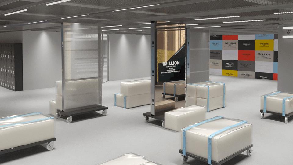 “不需舞台也能跳舞”是1M的口号,正如人们说的“只要心中有梦想,站在哪里都是舞台”。为了突显出品牌的特性和激励学员们勤奋练习,设计在空间中加入了很多的可移动镜子、玻璃等反光装置,让他们随时随地都可起舞~
