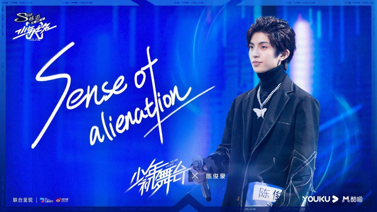 陈俊豪不止是在音乐创作上十分出众,还具有舞台表现力,为了在初舞台上给大家留下更深的印象,他将这首《sense of alienation》稍微改编了一下,在舞台的布景上也很有创意,因为这首歌是写给他已经过世的亲人,所以为了配合歌词中"伤心"和"思念"的情绪,他将一个电话亭搬上舞台,用在电话亭中对话筒诉说的形式演唱,向亲人传达他的思念之情,通过他极具情感的演唱和动人的舞台效果,在场的观众和导师都纷纷红了眼眶。