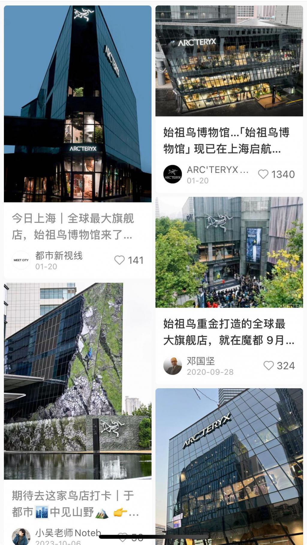 始祖鸟爱好者们纷纷在小红书打卡