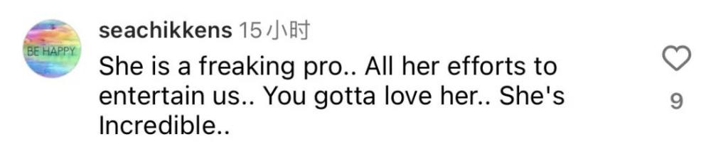 她太专业了 … 她所有的努力都是为了让我们开心 … 你一定要爱她 … 她太难以置信了 …