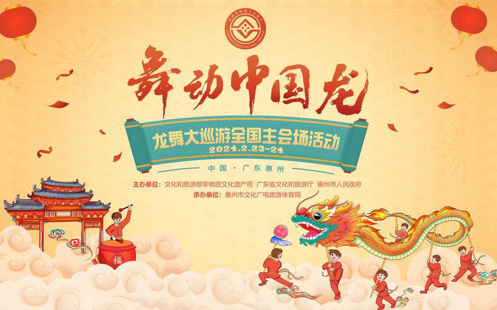 记者获悉,2 月 23 日至 24 日," 舞动中国龙 " ——龙舞大巡游全国主会场活动将在广东省惠州市举办。活动由文化和旅游部非物质文化遗产司、广东省文化和旅游厅、惠州市人民政府共同主办,由惠州市文化广电旅游体育局承办。