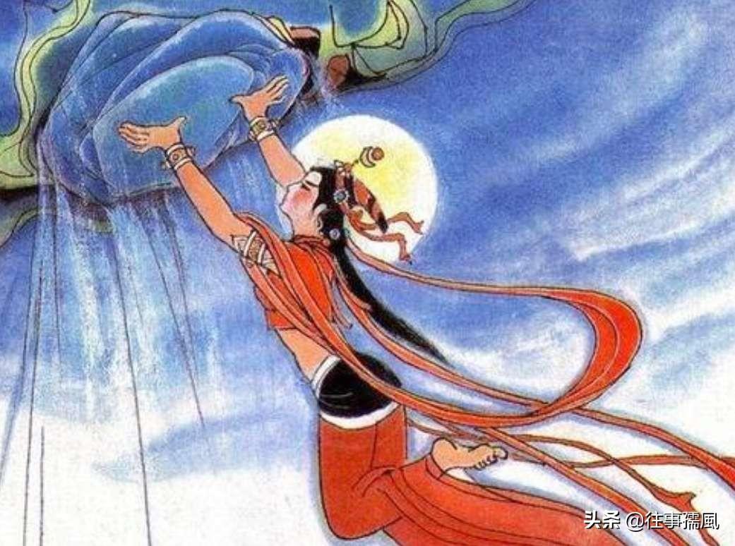 太平日子没过多久,水神共工和火神祝融之间发生一场战争,共工战败后,用头撞击了西山的不周山,使天塌了下来,天山破了一个大窟窿,淫雨不断,大地也被震的破碎不堪。女娲于是又来到黄河边挑选了许多五色石,放在火上烧炼成溶液,用它把天上的窟窿堵上。再到东海里捉来万年巨龟,用它的四足支撑住天的四方。