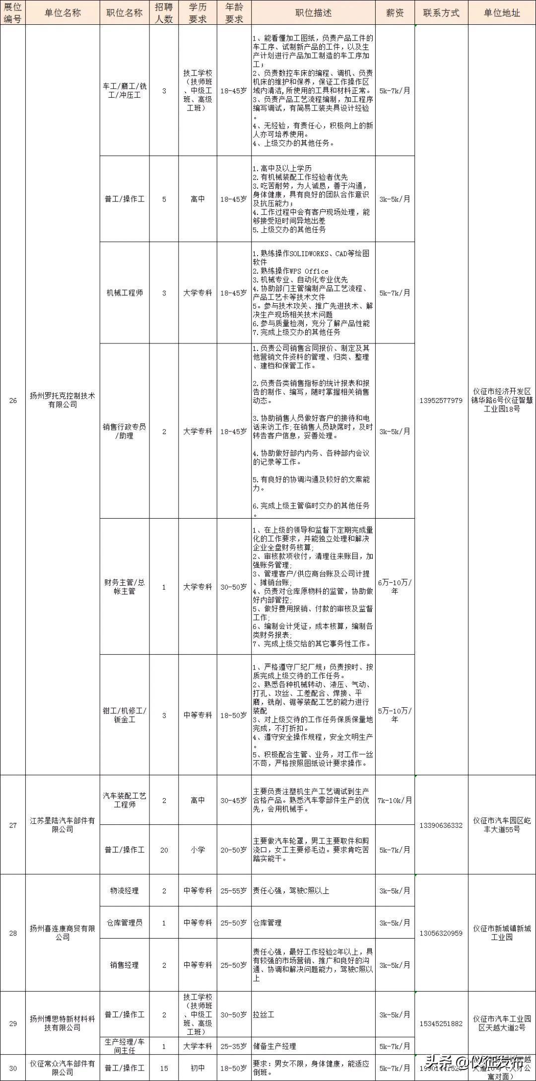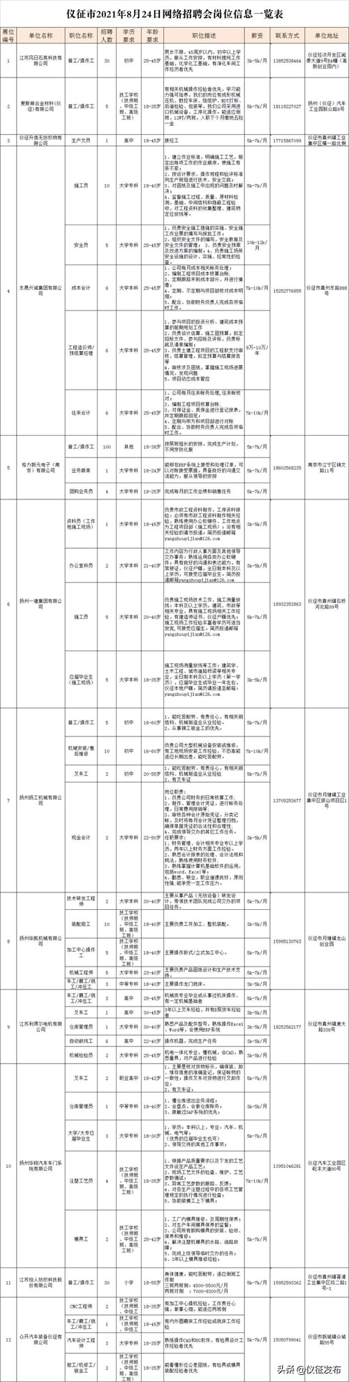 仪征线上招聘来了!涉及30家单位,621个岗位!