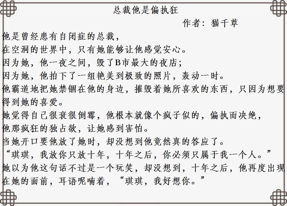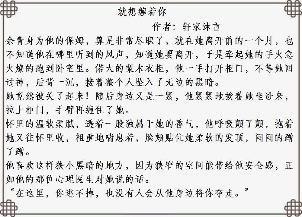 大家好!今天小编为大家推荐几本男主心理有问题,偏执强爱的超甜宠文。