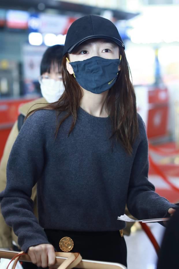 周冬雨现身机场出发前往巴黎时装周。