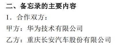 昨天下午,华为和长安搞了大新闻,双方签了一个《 投资合作备忘录 》。。。