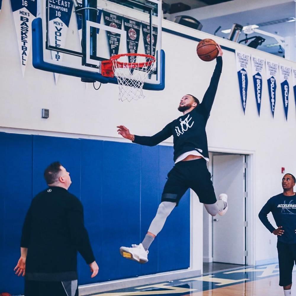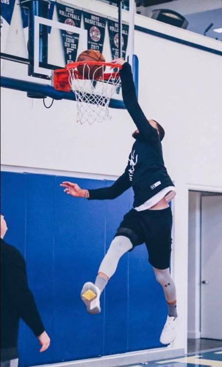 直播吧5月13日讯 美媒今日在Instagram上晒出了一张勇士球星斯蒂芬-库里训练时的扣篮图。