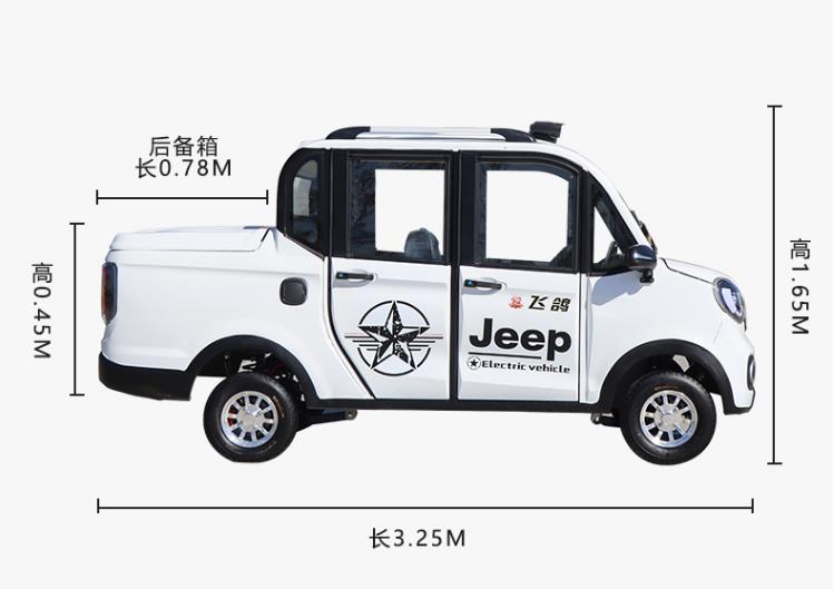 从外观来看,这款车前脸造型也是典型的老年代步车,多格栅设计,但整体造型,车辆有一些与众不同,它采用前客后货式设计,既有载人车厢,又有拉货储物后箱,车辆长宽高尺寸为3250×1300×1650mm,具备很长的车身空间,让它可以在载人、载物不同车厢布局,载人可载5人,拉货具备780×1060×450mm的后备箱,整车实用性更高。