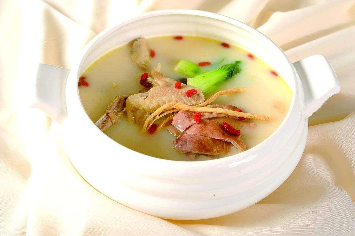 猪肚包鸡是一道广东省传统的地方名菜,属于客家菜系,又名猪肚包鸡火锅、凤凰投胎,流行于广东的惠州、河源、梅州等粤东一带,是广东客家地区酒席必备的餐前用汤,汤里浓中带清,有浓郁的药材味和胡椒香气。这道菜对中气不足、食欲不振、消化不良、虚寒、胃痛、酒毒伤胃等,具有行气、健脾、暖胃、养胃、散寒、止胃痛和排毒的功效。