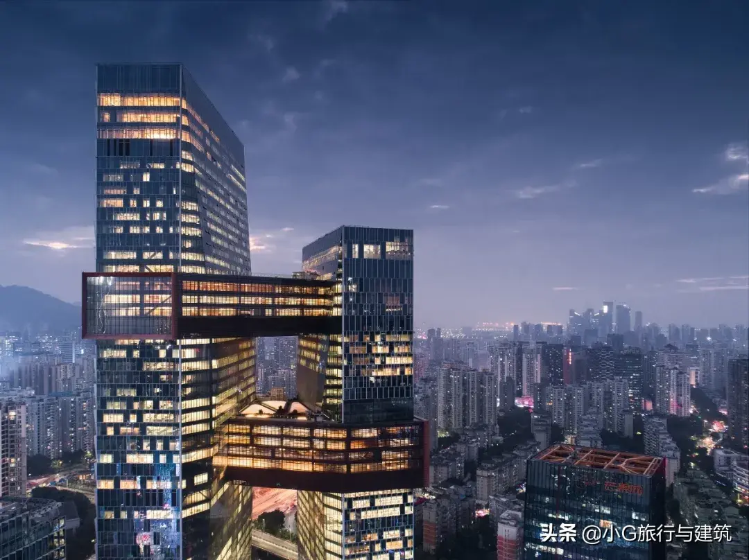 腾讯滨海大厦包括一座248米高50层楼的南塔楼,一座194米高41层楼的北塔楼和三条连接两座塔楼并在内部设置共享配套设施的“连接层”。