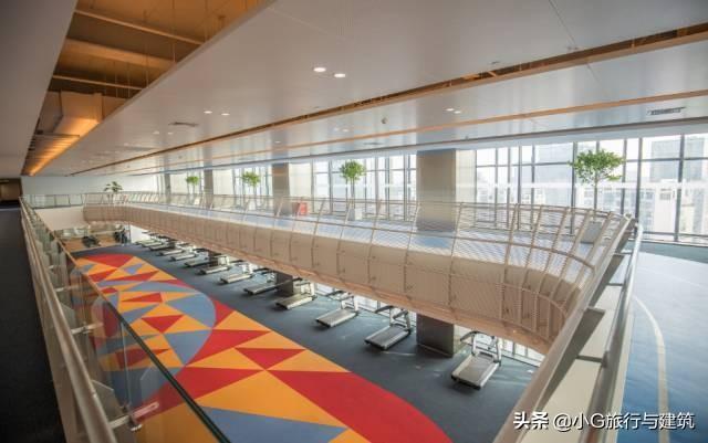 在100米高空,还有一条300米长的室内环形跑道贯穿两栋塔楼,是国内之最!