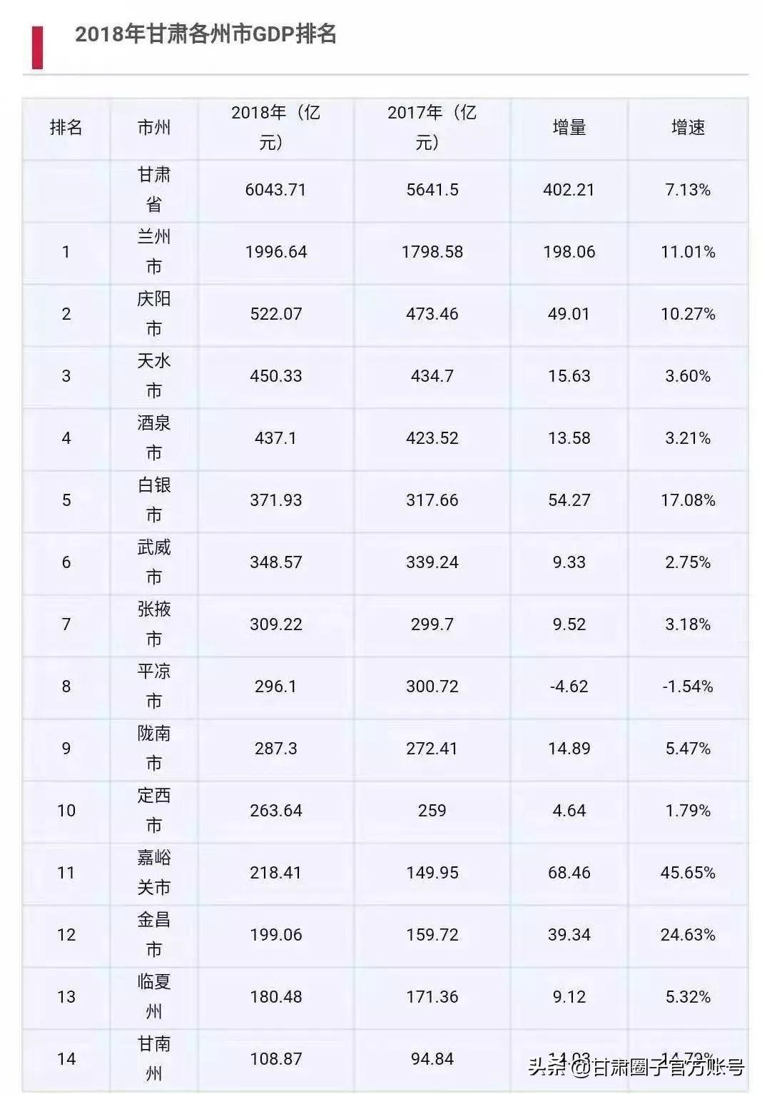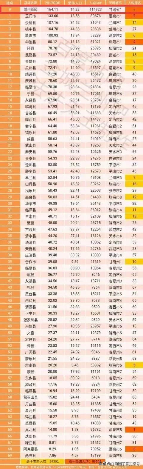 甘肃83个市(县)GDP排名公布,快看你家排第几