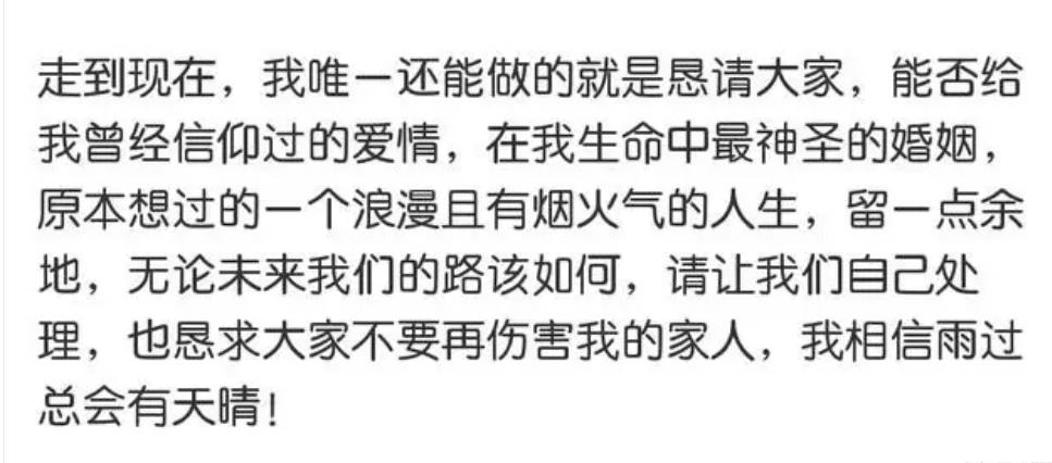 不过,近日贾乃亮在微博宣布长文,谈感情与婚姻,盼望大家给我们留一点余地!