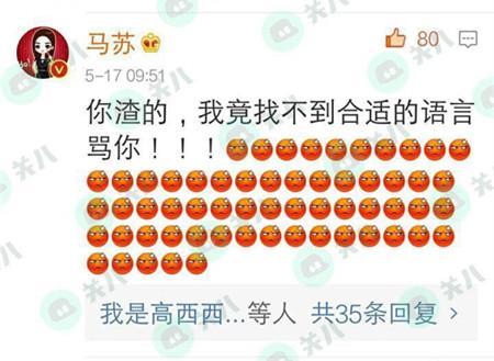 明星马苏也在其微博底下大骂,不是高仿号哦。是真的马苏哦,马苏果然真性情!