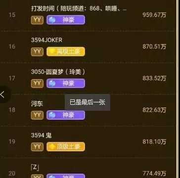 YY年度神豪榜单出炉:第一名竟然不是哦导,而是他