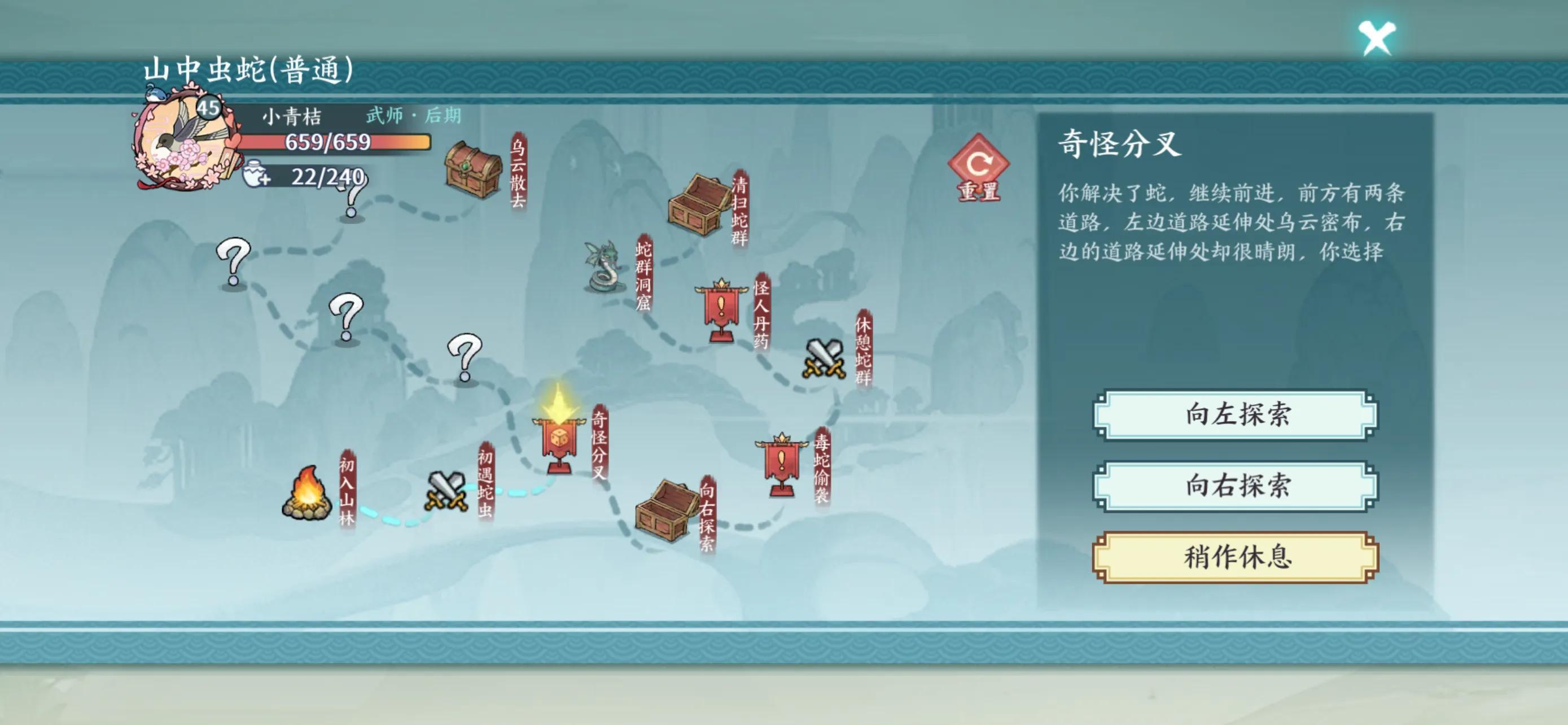 2、前往山林的蛇窟,与药园老头对话进入后续。