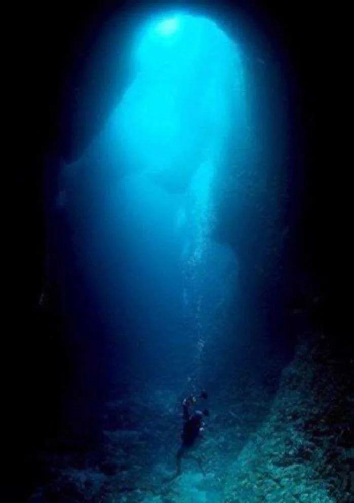 深不见底的海底里面透出来的光