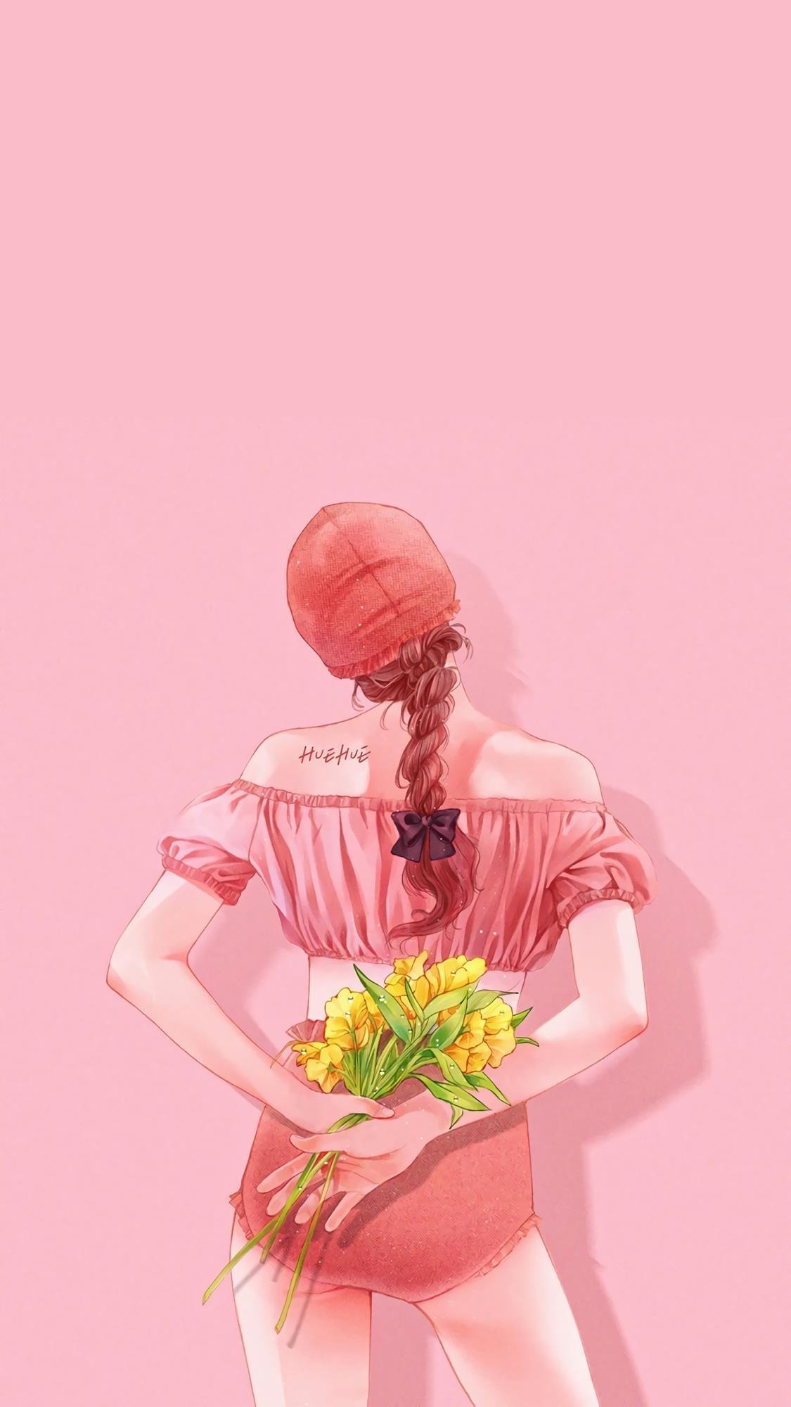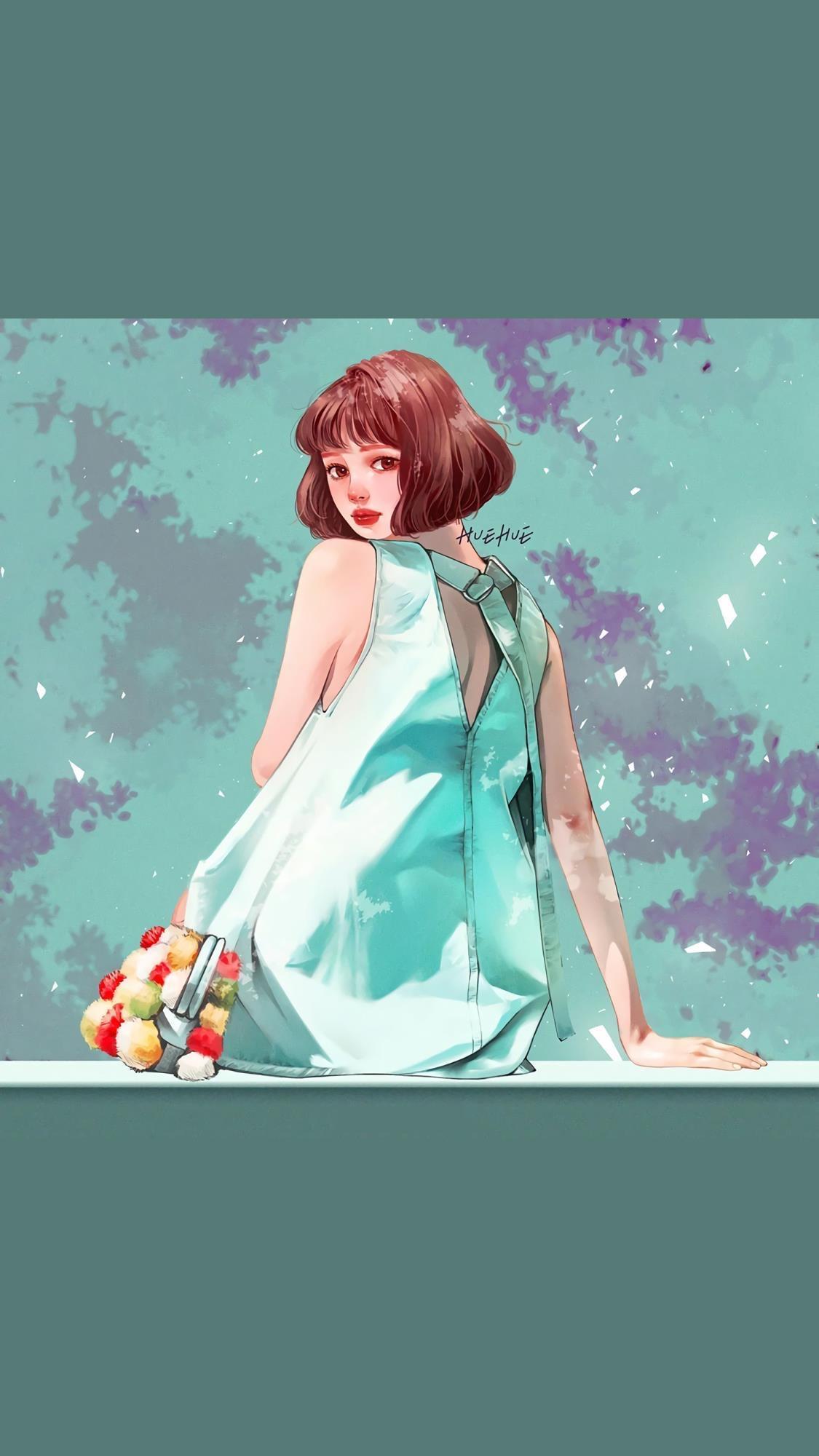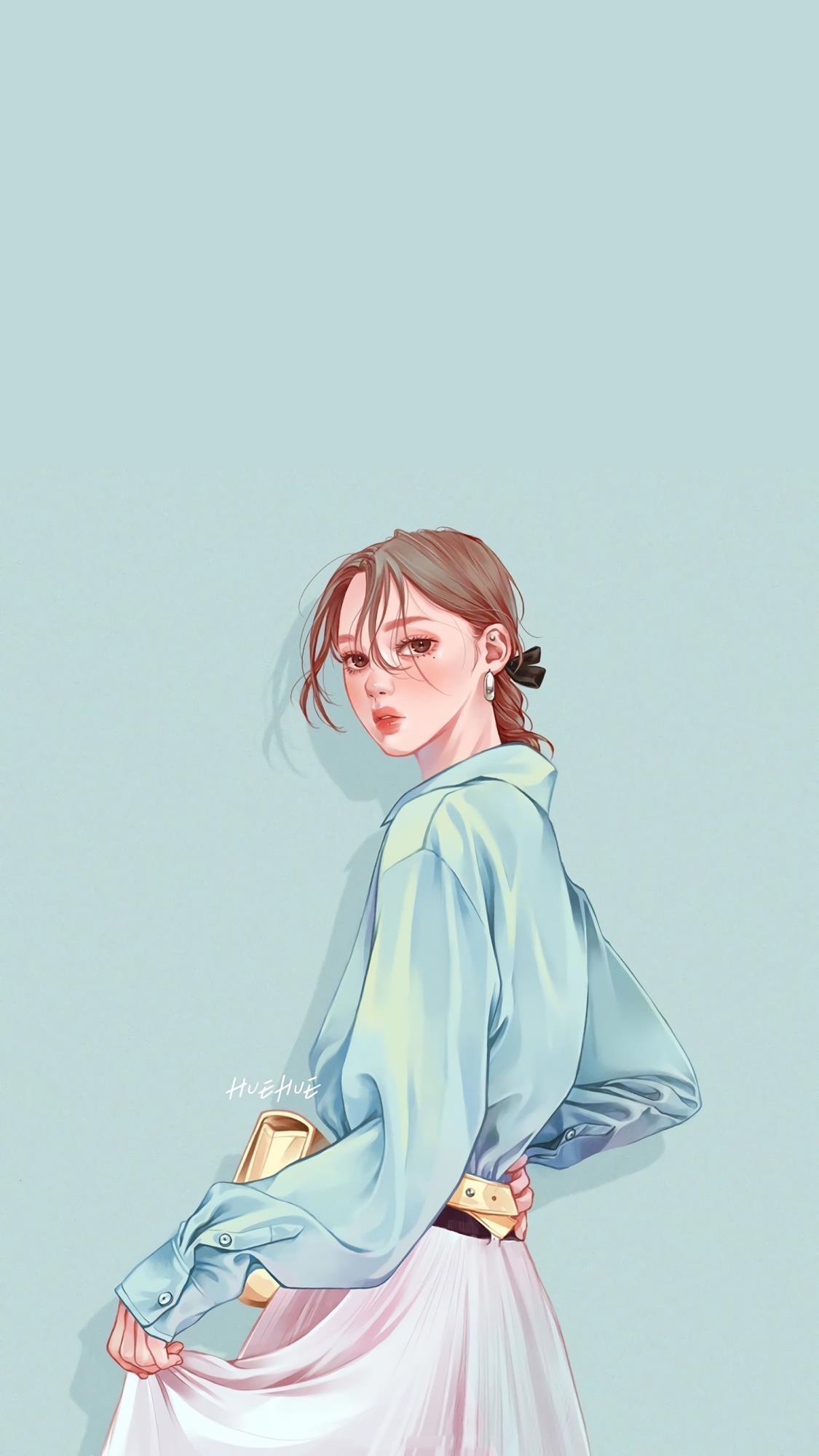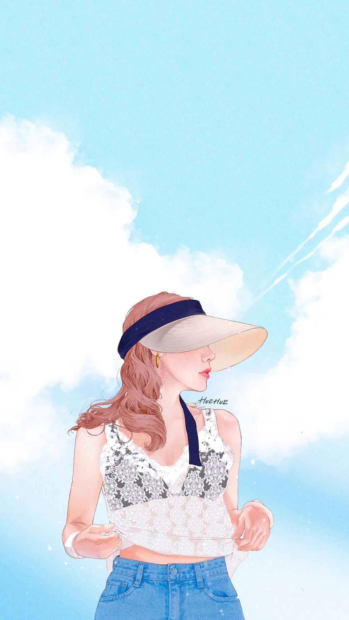 简简单单的女生插画,干净又好看,很适合当壁纸。
