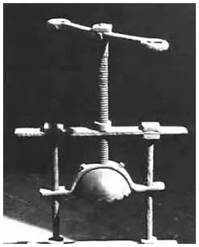 在玩转了各种轮子之后,人们又发明了碎颅器,跟古罗马奴隶主的压刑原理类似,只是这款是针对脑袋的。犯人的脑袋随着把手转动受到巨大压力,然后是下巴脱臼,再是眼珠爆出,最后脑浆从耳鼻中涌出。由于“极好的表演效果”,碎颅器在中世纪被广泛使用。