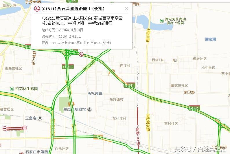 还有石黄高速继续往西行驶,藁城西至南高营段太原方向长期施工。