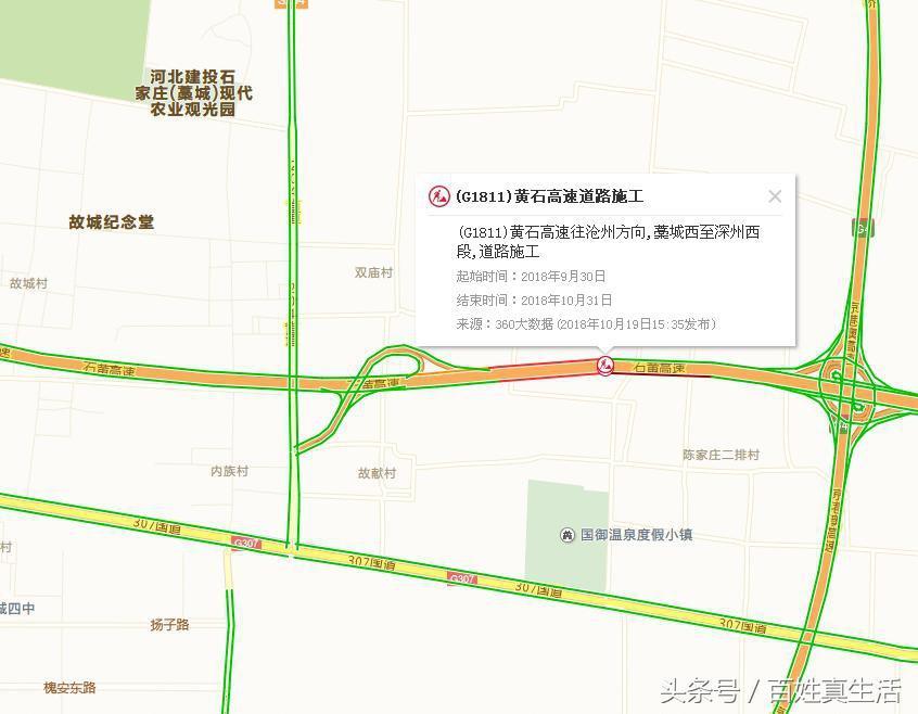 河北高速出行通知:石黄高速石家庄藁城段修路,路况不好 绕行