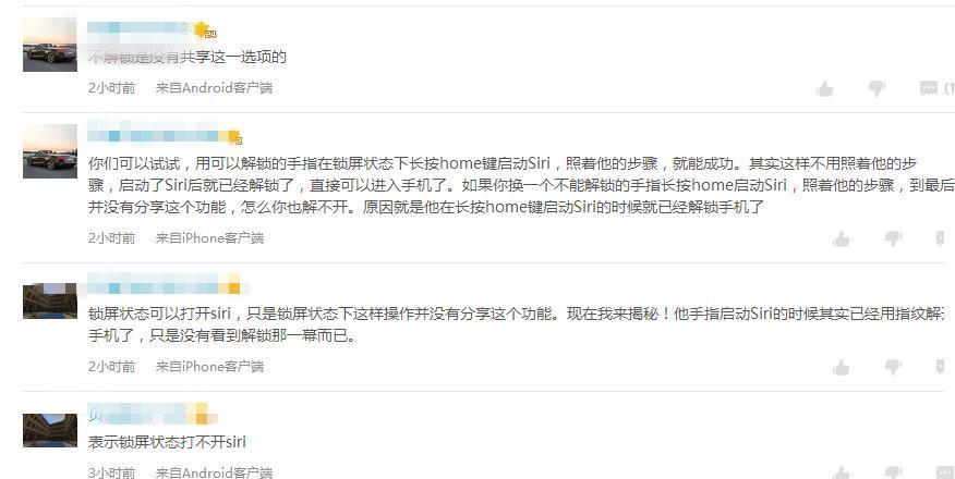从国外的视频来看,带有指纹的iPhone似乎可以通过Siri漏洞直接进入桌面,让人匪夷所思。不过也有部分网友表示了质疑: