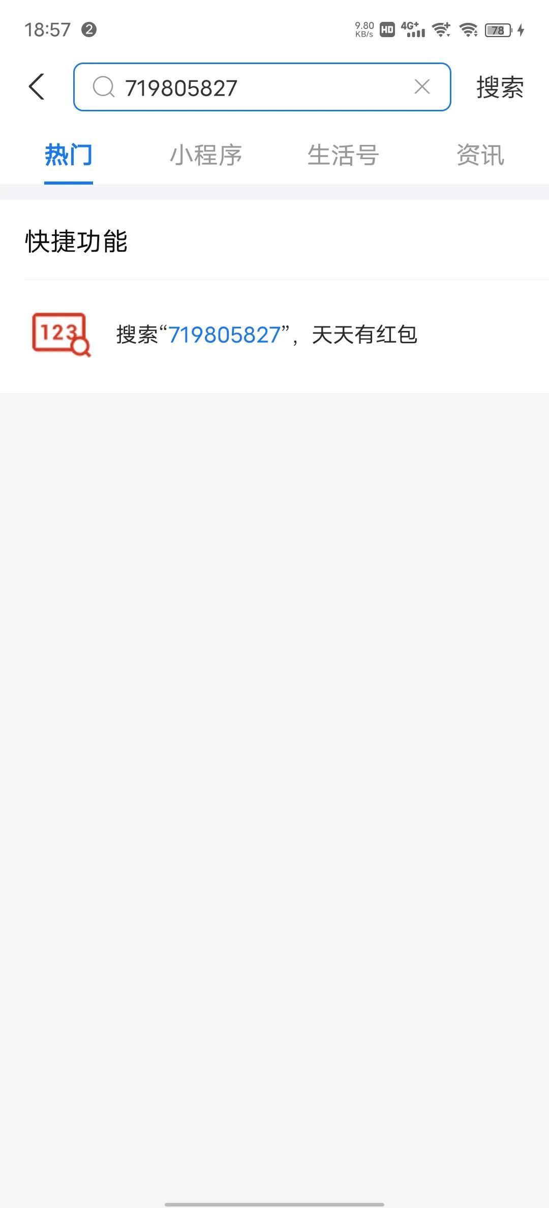 只要一步:打开支付宝,在首页搜索框输入“719805827”
