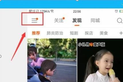 2.打开快手,进入首页,点击上方的菜单栏,如图所示: