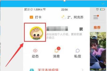 3.点击菜单栏后,点击快手头像,进入我的个人主页,如下图所示: