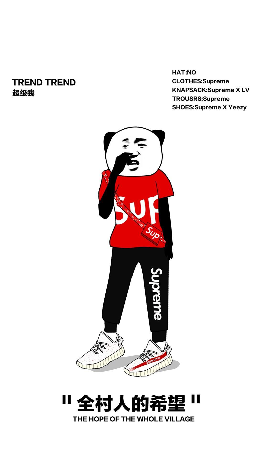 搞笑锁屏壁纸:熊猫头嘻哈文字 全村人的希望系列