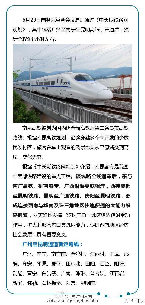 近日,国务院常务会议原则通过《中长期铁路网规划》,其中包括广州至南宁至昆明高铁,开通后,预计全程9个小时左右。根据规划,沿途穿越多个未开发的少数民族村落,旅客在车上观看的风景也是从平原渐变到高原,变化无穷!