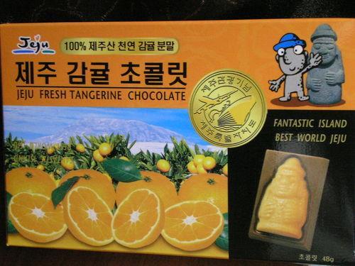 说到去韩国,那一定必去济州岛,而橘子就是济州岛的特产,这个橘子巧克力外包装的造型就是济州岛的石头爷爷,这特色零食绝对不能放过啊,也是韩国手信必备之一,在免税店就有得购买。